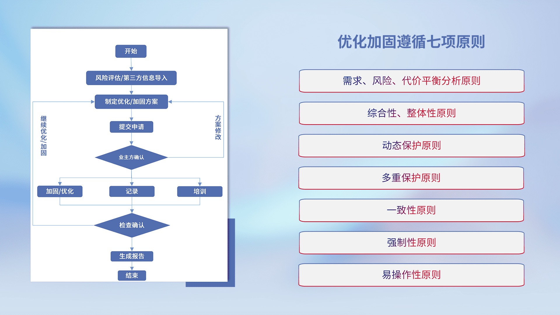 最大程度利用现有资产,,,,对评估发现的问题进行封堵与整改,,,,防止漏洞被利用,,,,提升整体网络安全性,,,为客户带来高标准的优化加固服务。。。